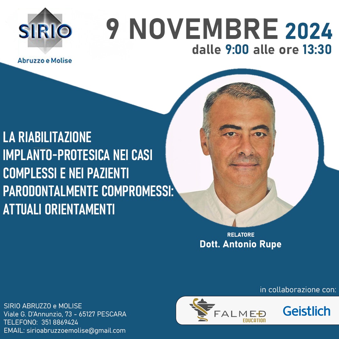 Sirio Abruzzo e Molise Viale Gabriele D'Annunzio 73, Pescara, ItalyNel contesto attuale, l’implantologia protesicamente guidata digitalmente è diventata un pilastro fondamentale per il successo dell’implantologia osteointegrata. La corrispondenza precisa tra il futuro restauro implanto-protesico e la posizione 3D dell’impianto è essenziale, soprattutto nei casi di edentulia parziale e nel settore estetico. Numerose pubblicazioni hanno evidenziato i rischi legati a un posizionamento implantare errato dal […]